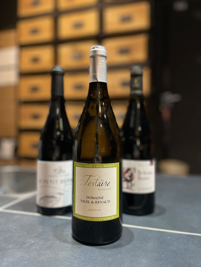 Élise et Benoît, originaires des Cévennes Ardéchoises, se rencontrent lors de leurs études vitivinicoles et développent une passion commune pour le vin. Après plusieurs expériences chez des vignerons, ils reprennent en 2008 un domaine en terrasses, entre 300 et 500 mètres d’altitude, au pied de la montagne ardéchoise. Leur travail reflète l’attachement aux terres cévenoles et la valeur de ces vignobles exigeants.